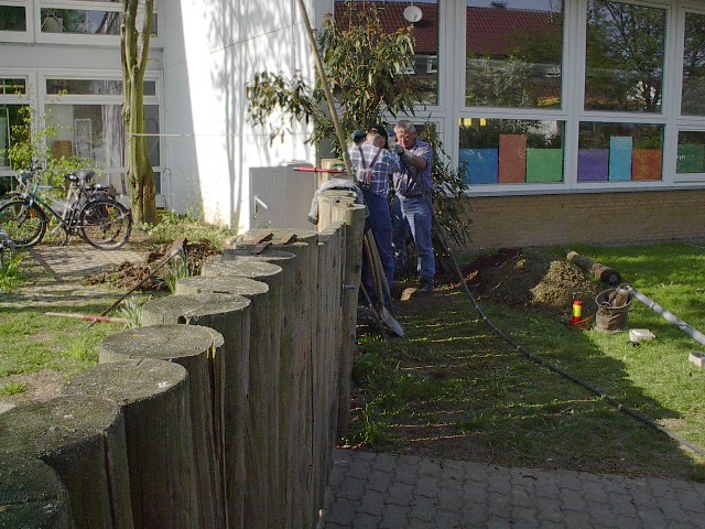 8. und 16. April 2004: Materiallieferung und Installation der Verkabelung
